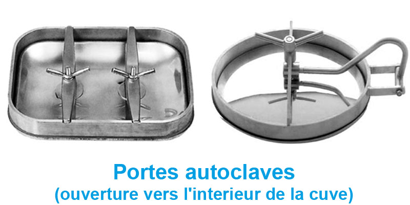 AUTOCLAV. Diam. 500 0.5 BAR 304 | PORTE POUR CUVE POUR CUVE AUTOCLAVE INOX 304 DN500mm Ouverture vers l'intérieur de la cuve Couvercle en inox poli Embase à souder hauteur 100 x 3 mm en inox passivé Pression de service 0.5 BAR Serrage central = volant inox Joint EPDM aseptique cavalier sur le cadre in | 113500VAL |