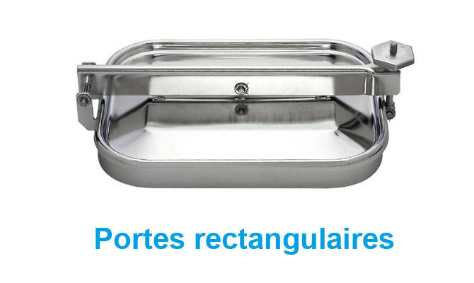 PORTE I316 310X420 V1B douV | PORTE POUR CUVE POUR CUVE INOX 316L rectangulaire 310 x 420 mm - Double bras 1 serrage Ouverture Verticale Embase en inox poli 60 x 8 mm Pression de service 0.3 Bar Couvercle en inox poli Levier en inox brossé Volant Inox Joint EPDM inclus | 2326254TEN |