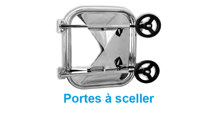 PORTE 400/530 HOR 2 BRAS 316L | PORTE POUR CUVE POUR CUVE INOX 316L rectangulaire 400 x 530 mm - Horizontale 2 bras Pression de service 0.5 Bar Embase 60 x 8 mm Volant Inox Finition : Embase + couvercle en inox poli Levier en inox brossé Joint EPDM inclus | 2328153TEN |