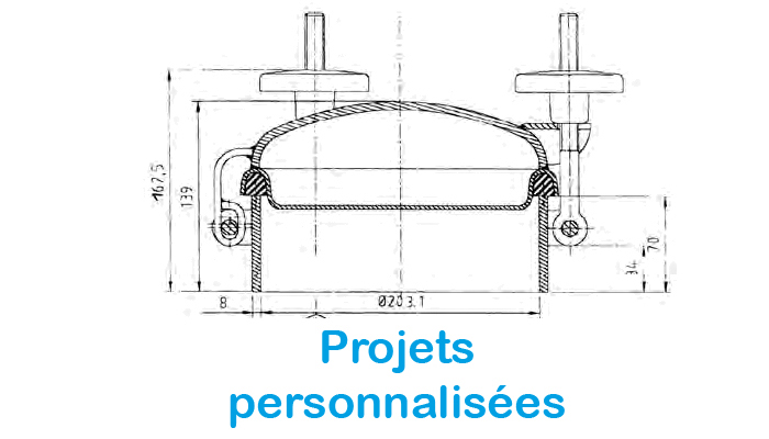 PORTE ACIER Diam. 600 - PS 0.05bar Emb 60 | PORTE POUR CUVE ACIER diam. 600 mm 1 point de serrage bras en "V" Passage utile 602 mm Embase 60 x 8 mm Pression de service 0.05 BAR Pression absolue 0.5 BAR | 21110600MT |